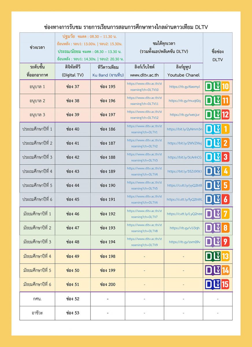 การเรียนการสอนทางไกล (DLTV) ผ่านทาง www.dltv.ac.th